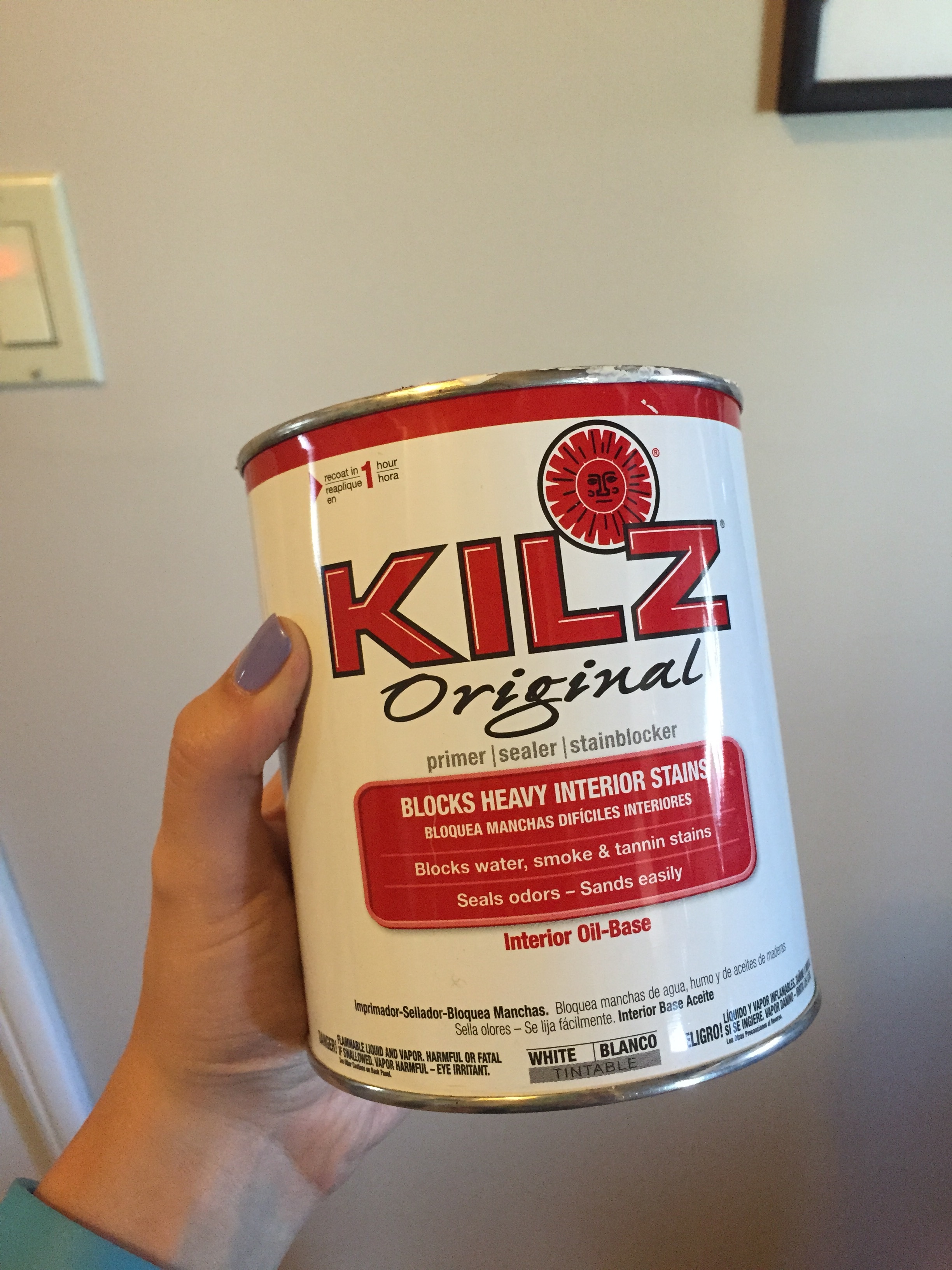 CAUTION: When using kills, use an old or crappy paint brush. It is nearly impossible to get the product out of the brush. I’ve definitely ruined a few brushes with Killz.