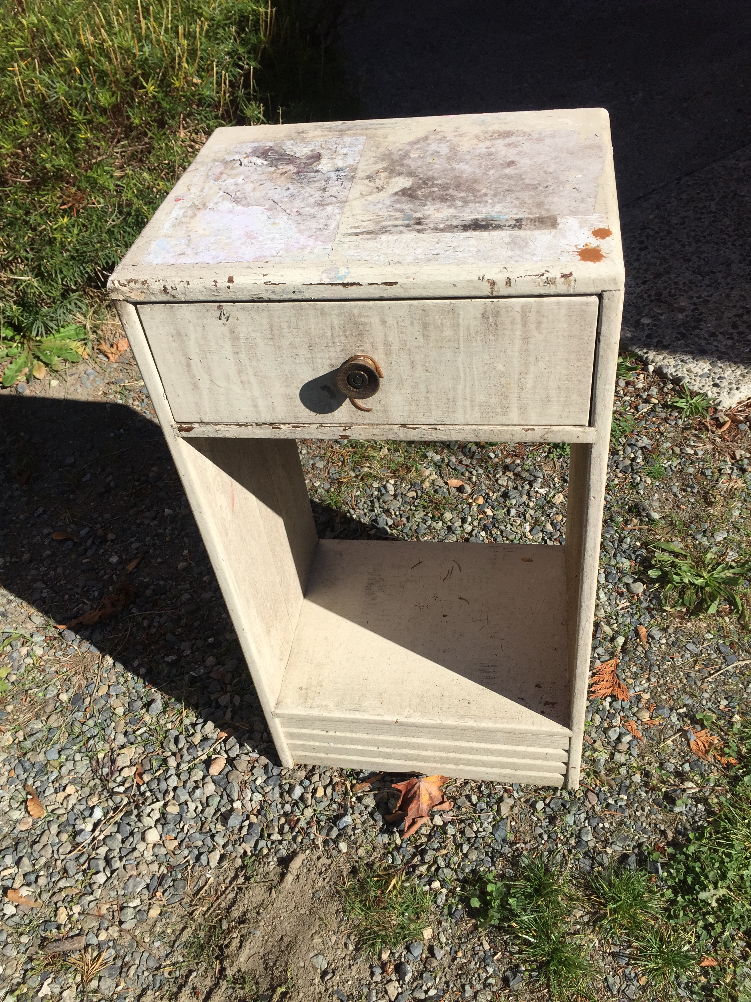 I found this night stand abandoned on the side of the road in Seattle. And I must say, it was in pretty bad shape. It looked as though it had been outside for a long while. Complete with mildew and water damage. But none the less, I couldn’t pass up this solid wood stunner. I knew that with a little effort, I could restore it to it’s former glory! Although, it did turn into a bit more work than I anticipated.