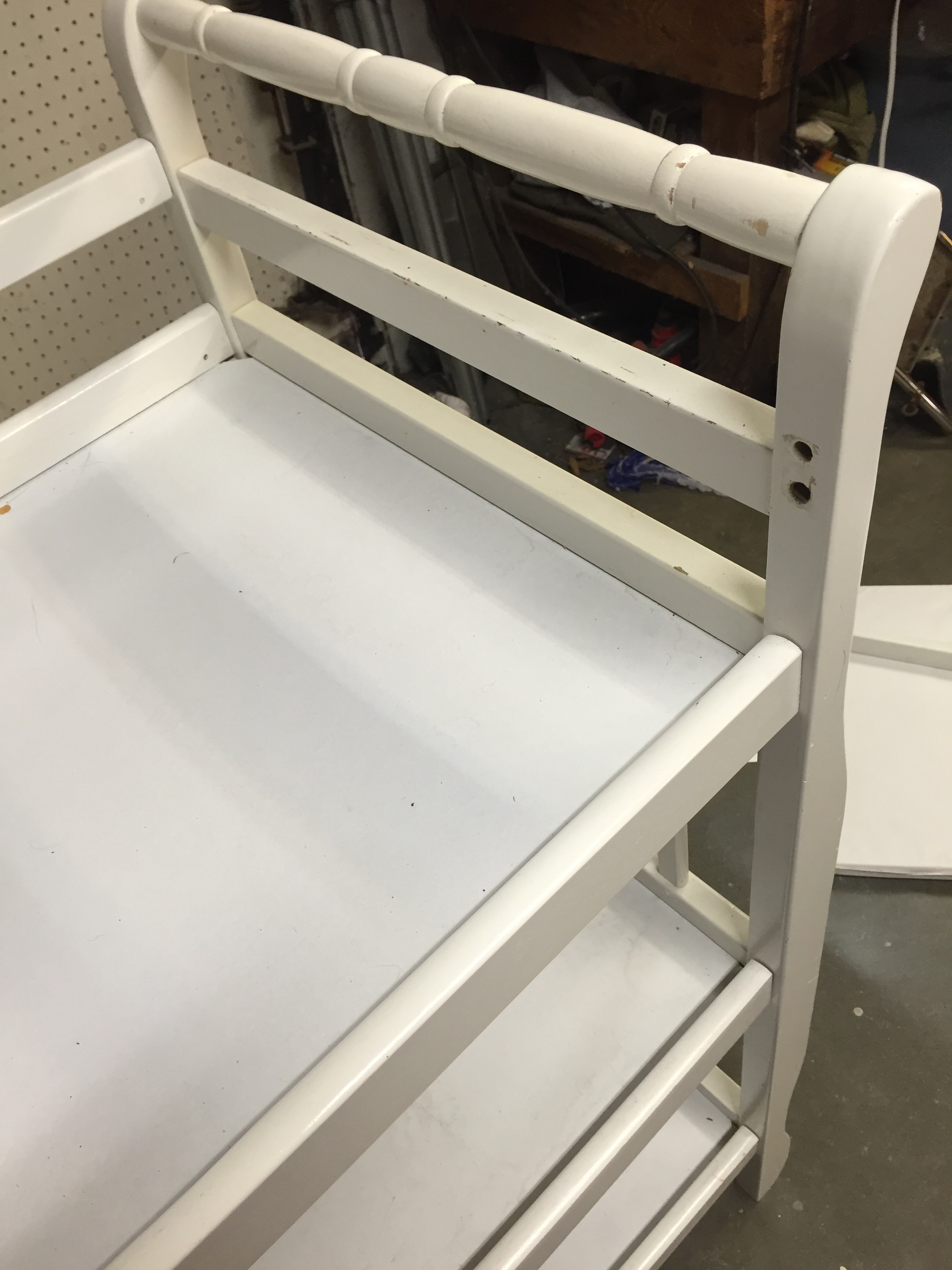 Today I bring you my latest project, and I’m truly excited about the way it turned out! I found a plain baby changing table on Craigslist advertised for free. I picked it up from a lovely lady in West Seattle. This is what it looked like when I picked it up.