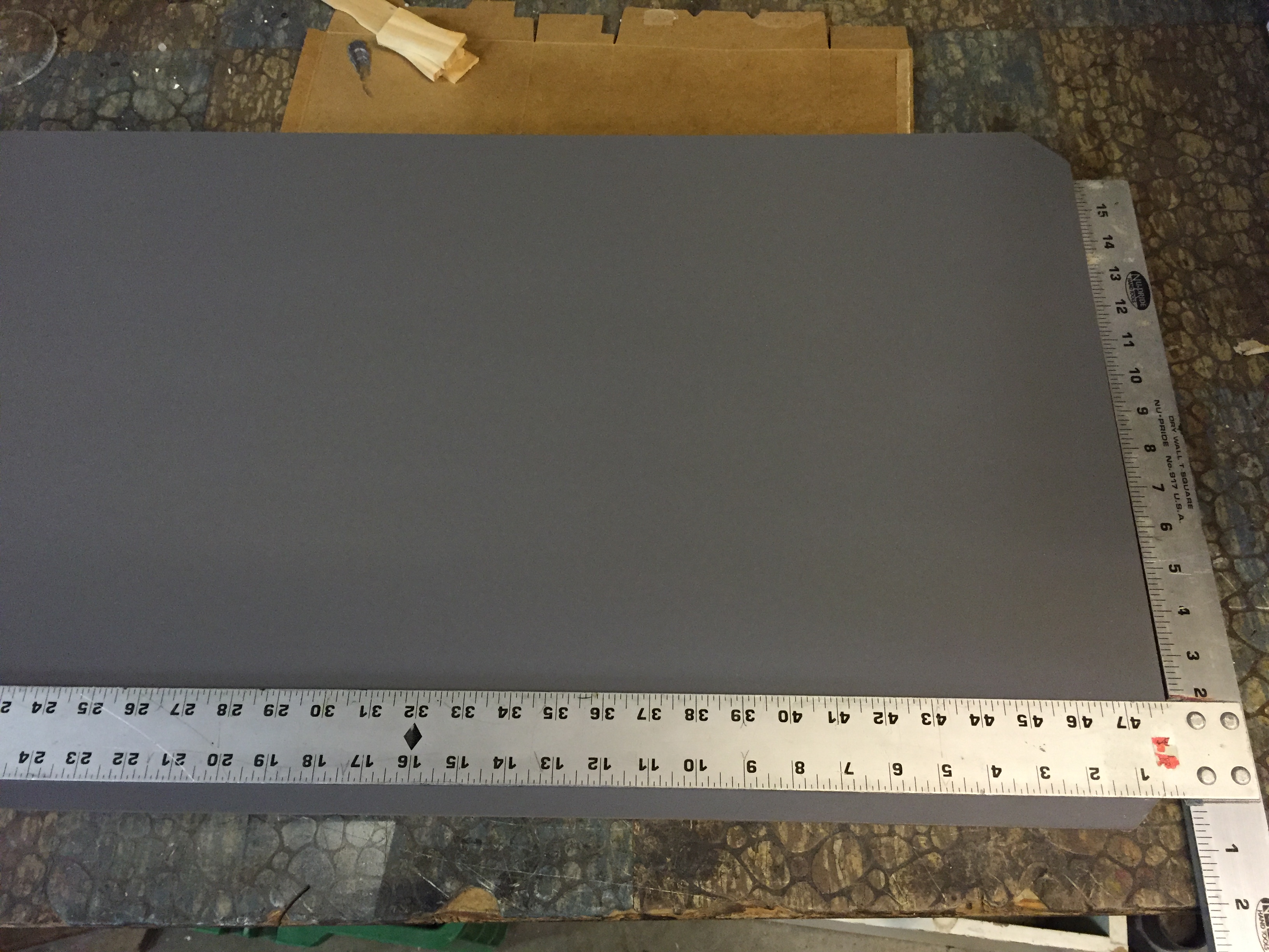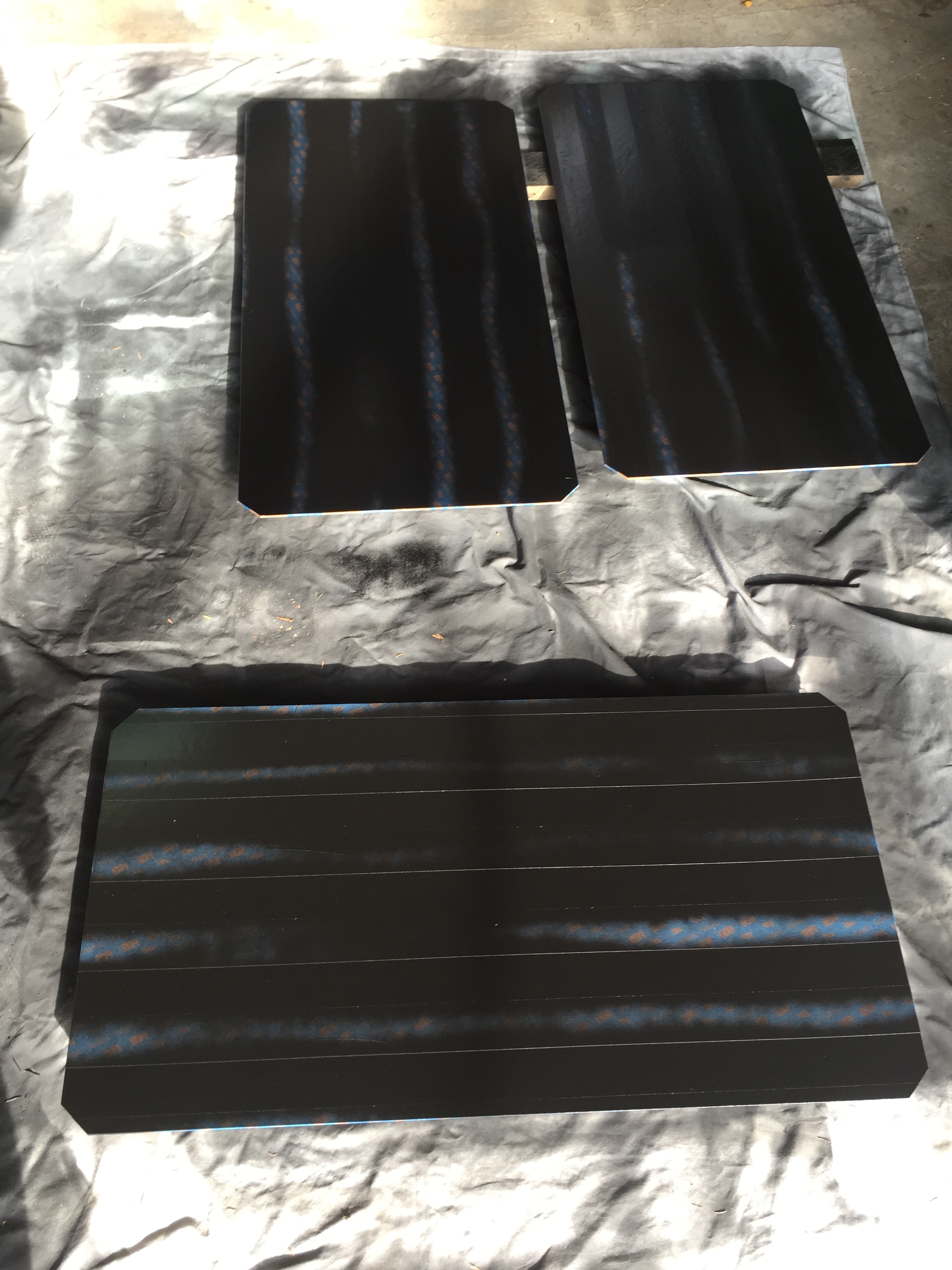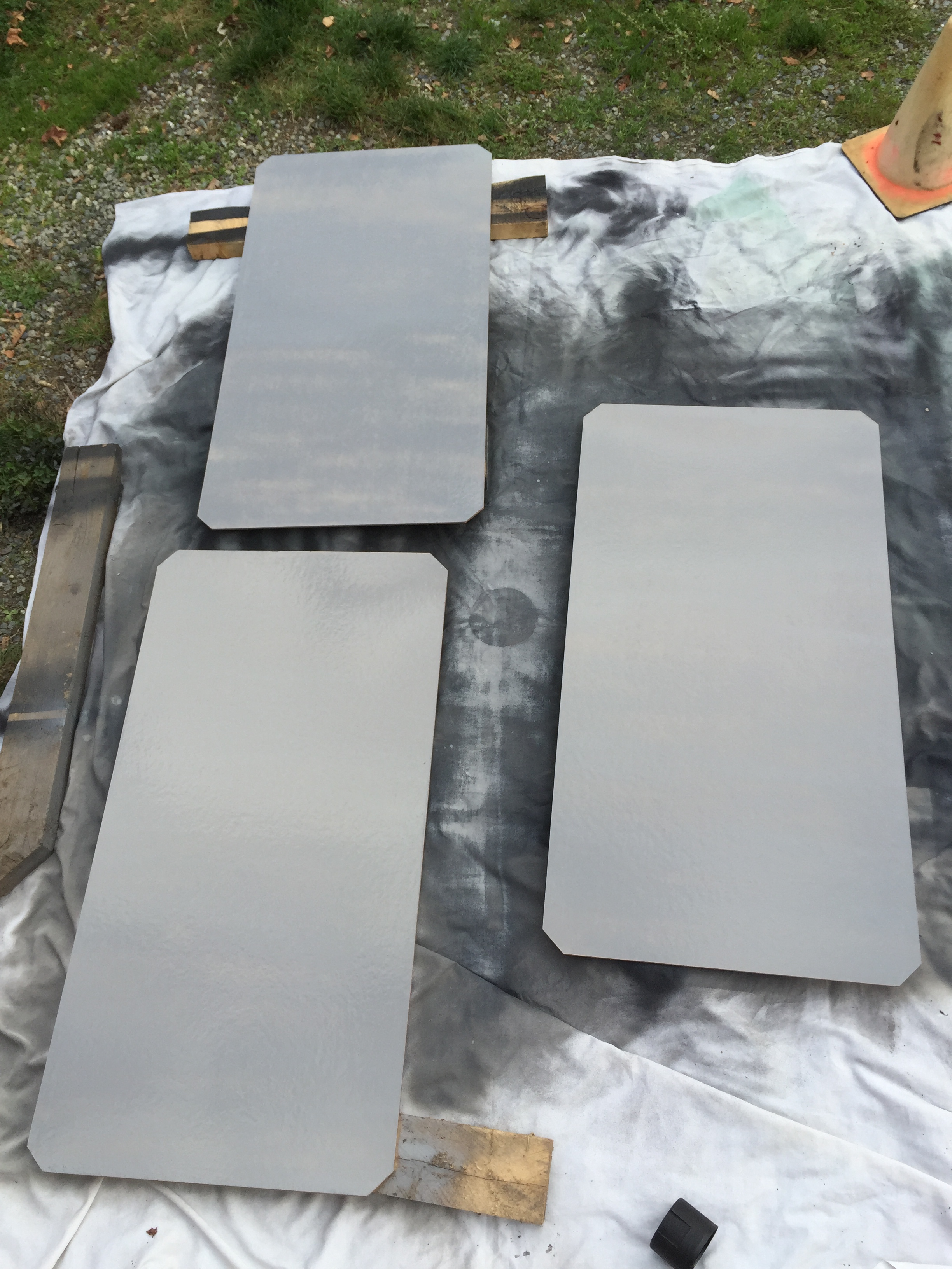 Then, you can paint the rest of the pieces. The bottom of the shelves received two coats of this grey color, and I needed two whole cans for this. The shelves were a lot bigger than I anticipated, and needed a lot of paint. Make sure to allow ample drying time in between layers of paint. At least an hour. This is also a good time to finish painting the rest of the changing table black. I painted one side of ever piece, then once they were dry, I painted the other side.