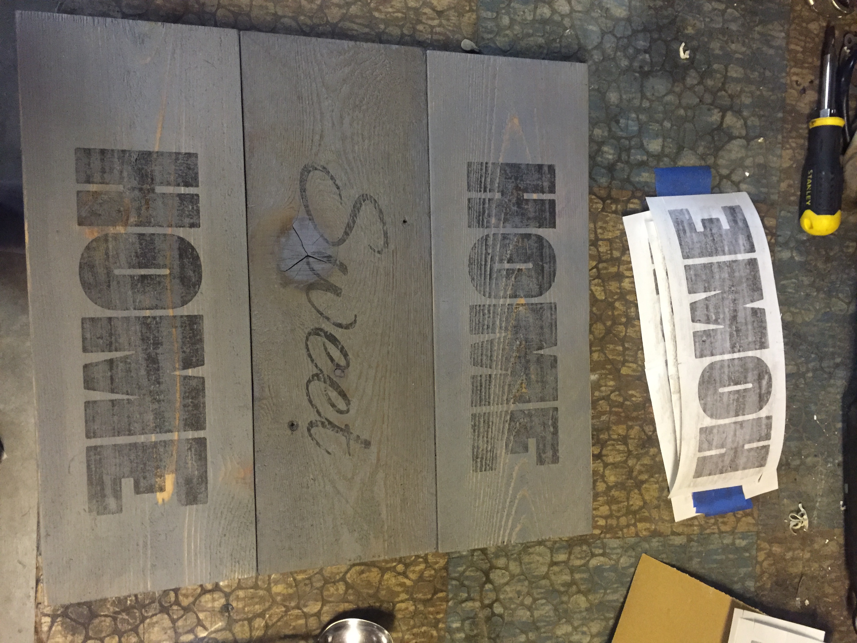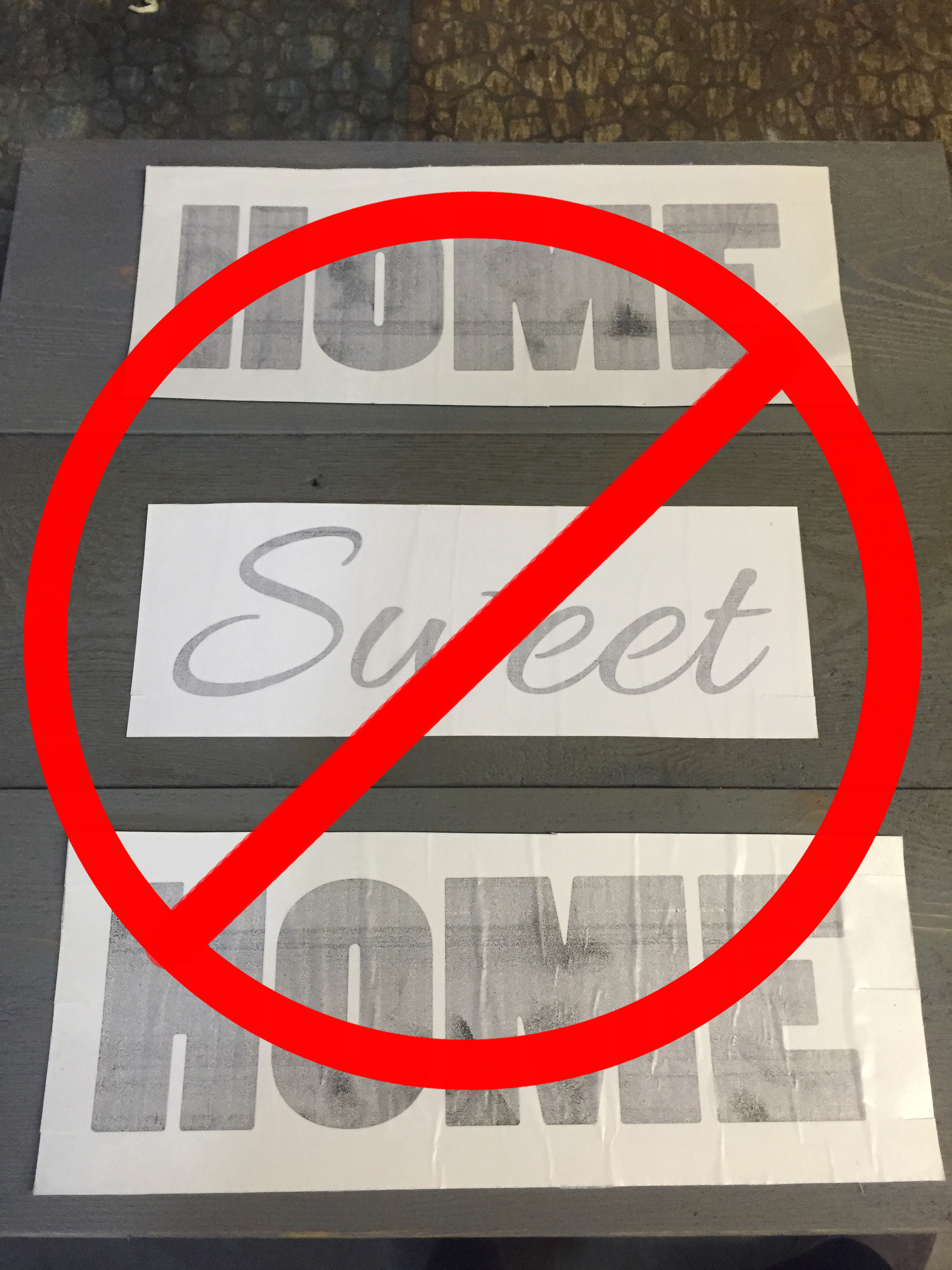 CRUCIAL NOTE: I’m sure you see the huge red X on the picture on the left. This is NOT how to print out the letters. Luckily, I caught my mistake before I applied the letters to the wood. You want to flip or “mirror” the image when you print it out. There is a box to check for this option when you click “file print…” If you can’t find this, you can have Google show you.