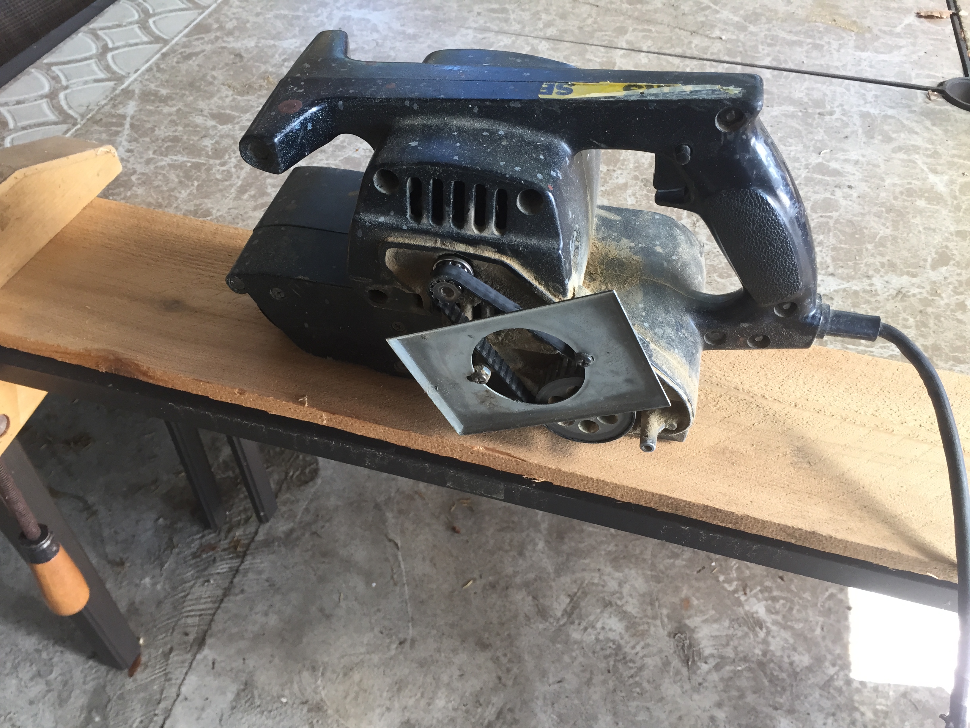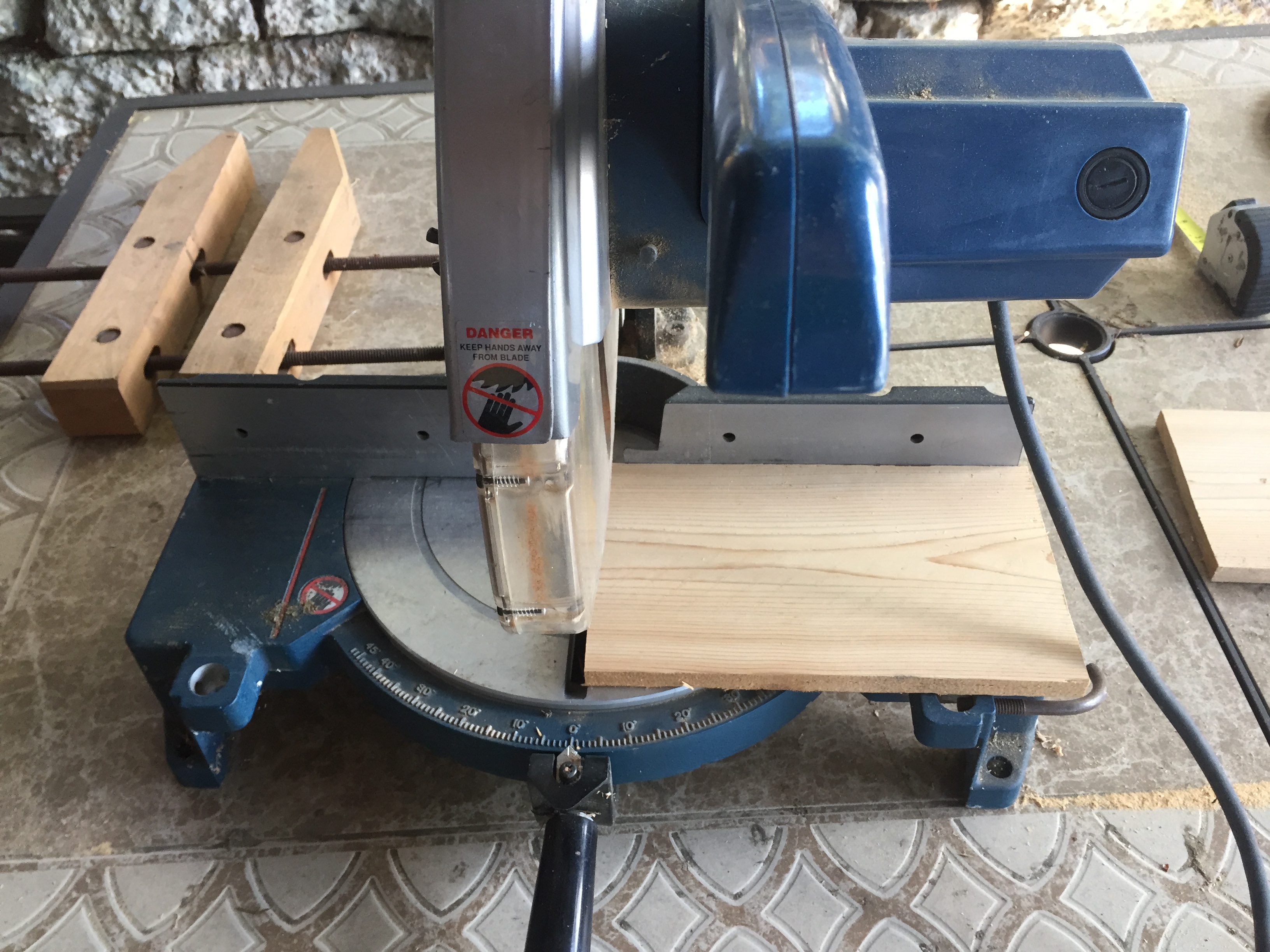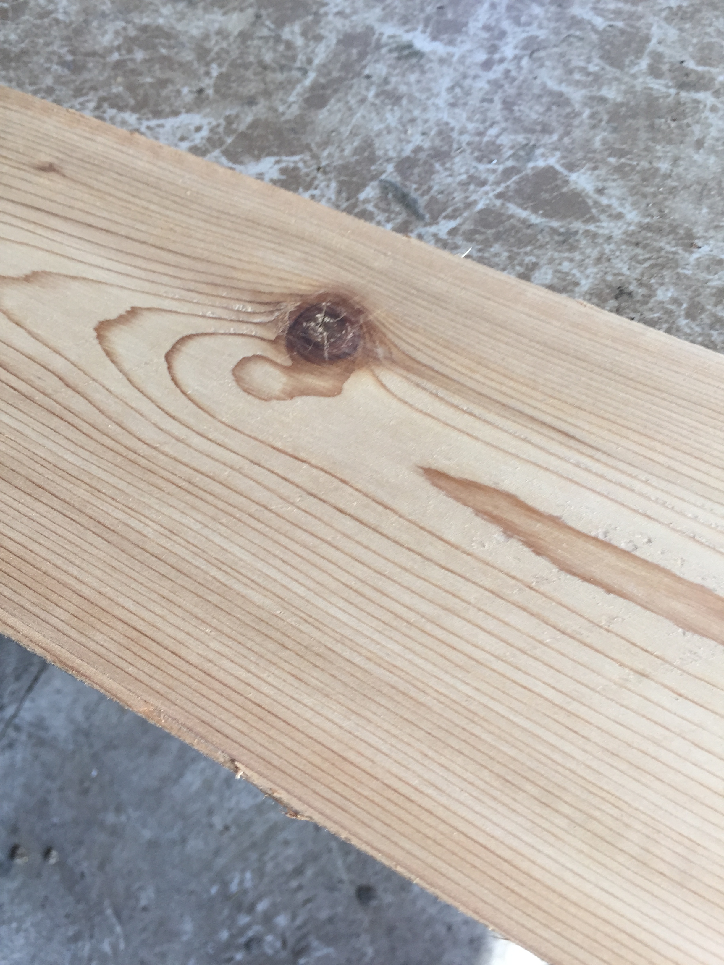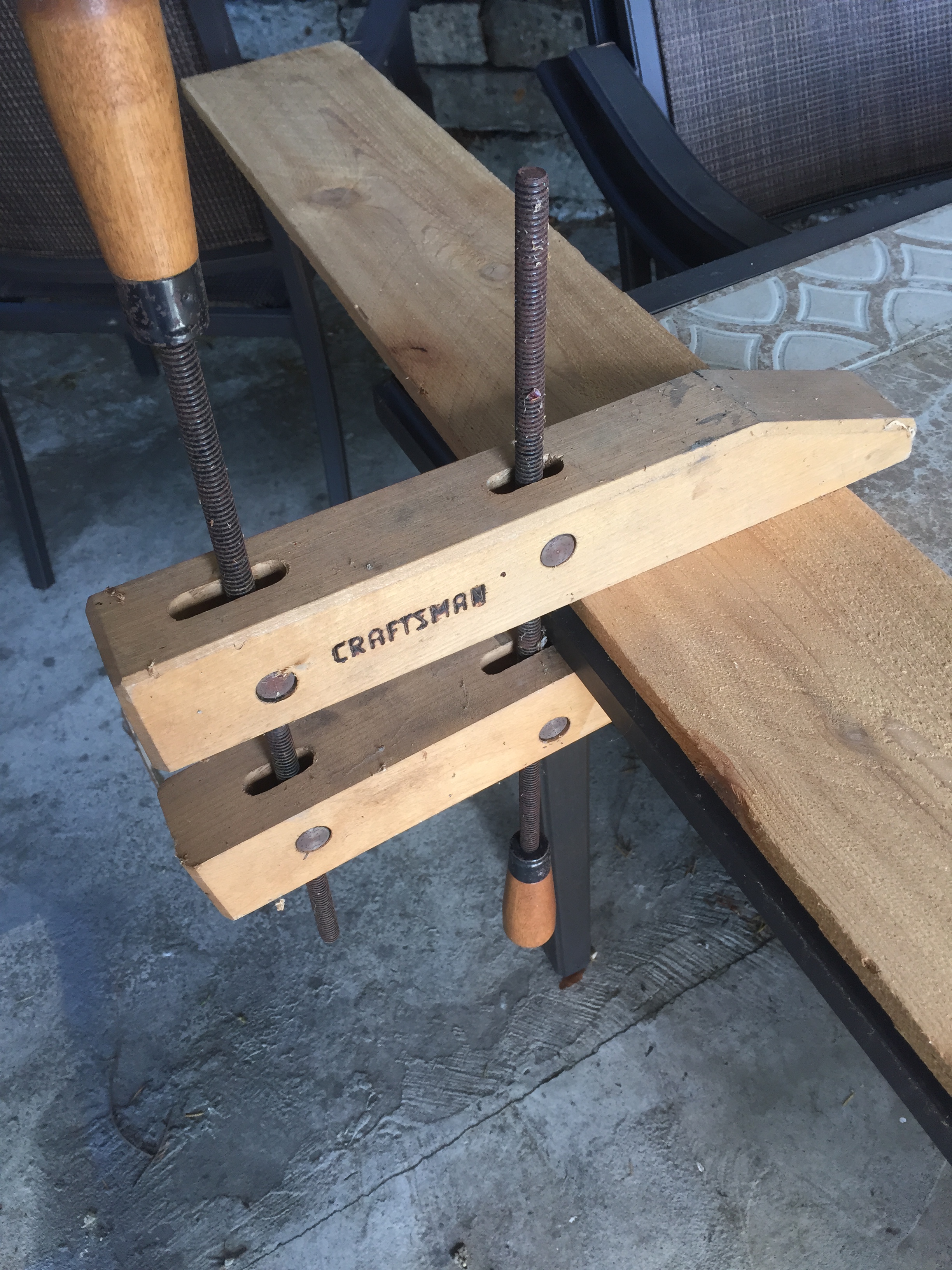 The wood I used for this project is the same fence boards that I used for the side table project which I found in my dad’s wood pile. The first thing I needed to do was give it a nice sanding. The fastest way to do this is with a belt sander. Make sure to clamp the wood down to a table or work bench. This will save you a lot of hassle! I only sanded half the board because I knew I didn’t need that much of it. Once it’s completely smooth or the texture you desire, it’s time to cut!