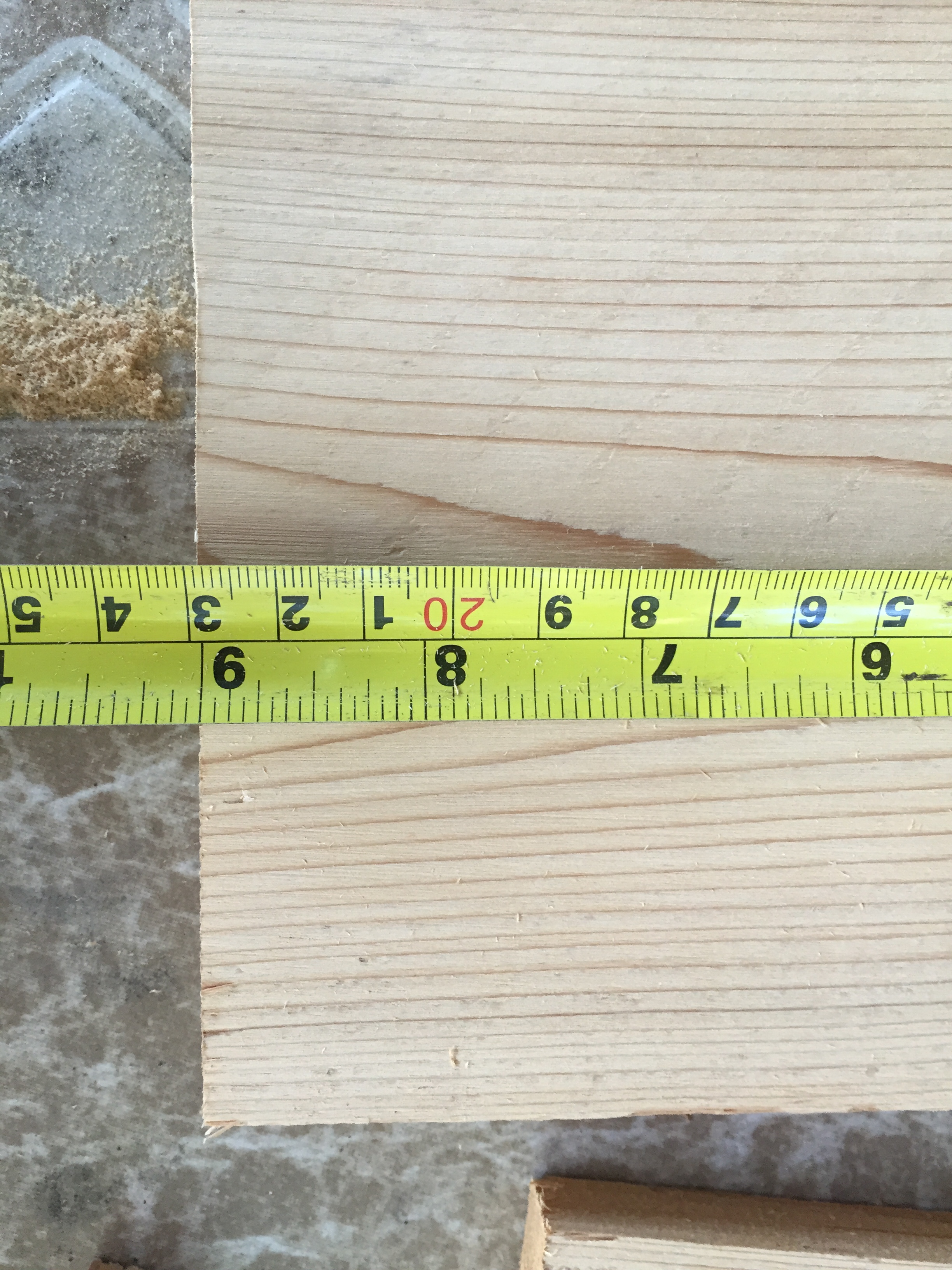 Once you’ve decided how large you want your backdrop to be, its time to cut them. Since I made more than one, I had to make sure they were exactly the same size. This is when you’ll need your handy-dandy tape measure! I decided 9 inches long would be a sufficient length. Make your marks on the board for the first piece, cut slowly, and then measure and mark the second piece for cutting.